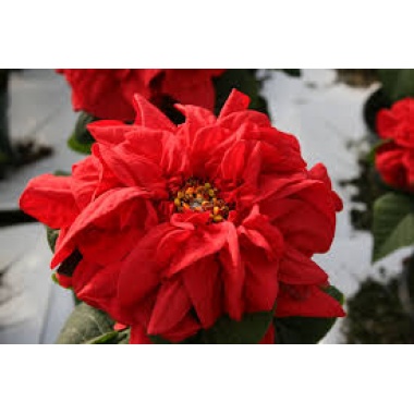 the Winter Rose variety looks like a beautiful rose in bloom. Grown as a single stem with some side flowering. Flat top, round shape flowers with curly leaves.Place your poinsettias in a medium to bright location, but not in direct sun. Keep away from drafts such as front doors, cold windows, and also hot air furnace vents. Keep the soil moist but not soggy.If your plant is sitting is a decorated pot cover or container, that you empty the water out after watering so that the plant is not sitting in water. The average watering is every three to five days depending on location and temperature.