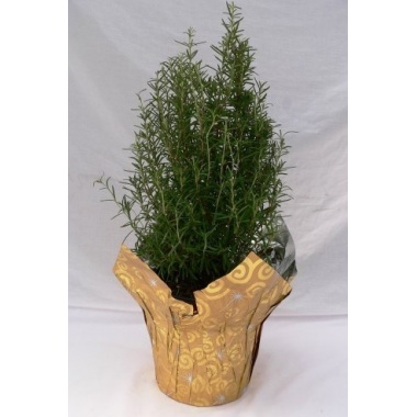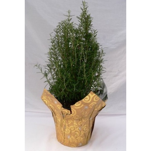 Rosemary Trees are edible. It is the same herb grown outside in the summer, only shaped into a Christmas tree. Keep your rosemary in a bright warm location. Keep soil moist but not soggy. Do not over water